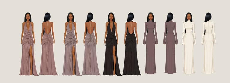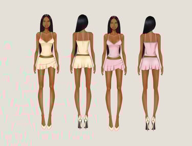 This service does not include technical measurments or construction details in writing. Tech packs are offered separately or as part of a bundle. One sketch includes one colorway. Additional colors can be added to the same sketch for an extra fee, without changing the design. One base body croquis must be selected for each sketch.