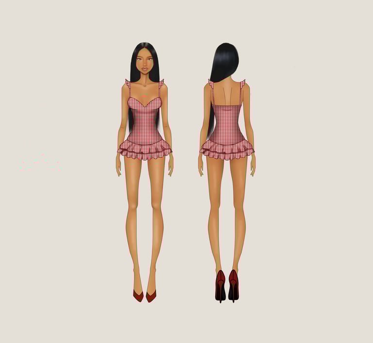 This can be an approved fashion sketch or an existing flat sketch. Please note that technical flat drawings are not included in this service and must be purchased separately if needed.